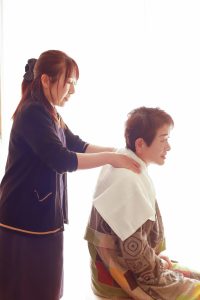 足湯に入り、血行を良くして、気になる部分やお疲れのところなど、ご希望をもとに施術します。